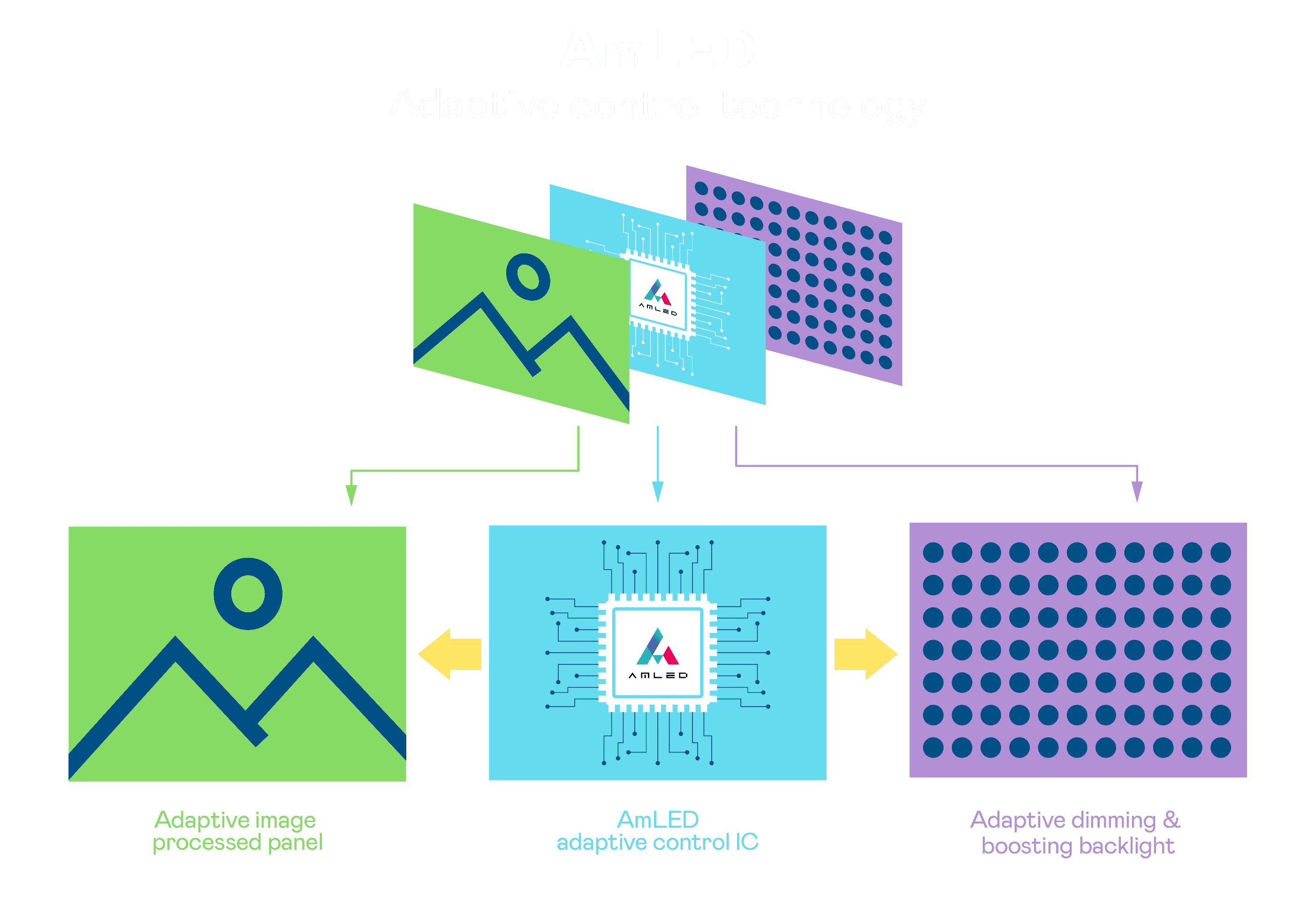 透过动态影像处理和 Mini LED 背光模组的动态对比及峰值亮度调变,,AmLED 显示技术精准细致的局部调光效果达到超过 1,000 nits 的超高亮度表现,,,亮部更明亮、、、暗处更深邃,,呈现真实黑色中的亮度以及平滑灰阶,,,,打造出具层次分明的精致光影细节。。。。